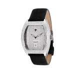 INTRIGO Pavé is the “Haute de Gamme” of LANCASTER products. This prestige series is made in stainless steel case (40 mm. x 32 mm.) and available in three colors of plating (silver, gold and rosé). INTRIGO Large is set with 560 genuine diamonds for 4,30 carats weight. Equipped with Swiss Made Quartz Ronda and genuine black sting-ray or black & white leather band