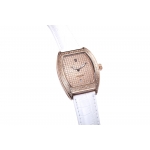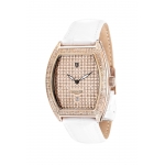 INTRIGO Pavé is the “Haute de Gamme” of LANCASTER products. This prestige series is made in stainless steel case (40 mm. x 32 mm.) and available in three colors of plating (silver, gold and rosé). INTRIGO Large is set with 560 genuine diamonds for 4,30 carats weight. Equipped with Swiss Made Quartz Ronda and genuine black sting-ray or black & white leather band